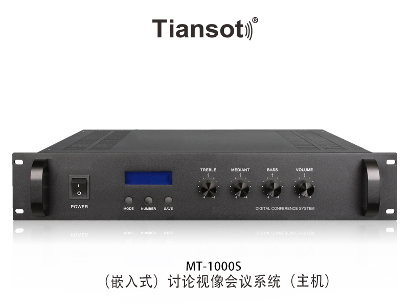 面板具有LCD显示器,122×32点阵显示会议模式,面板上具有功能键、旋钮供系统调节或设定之用