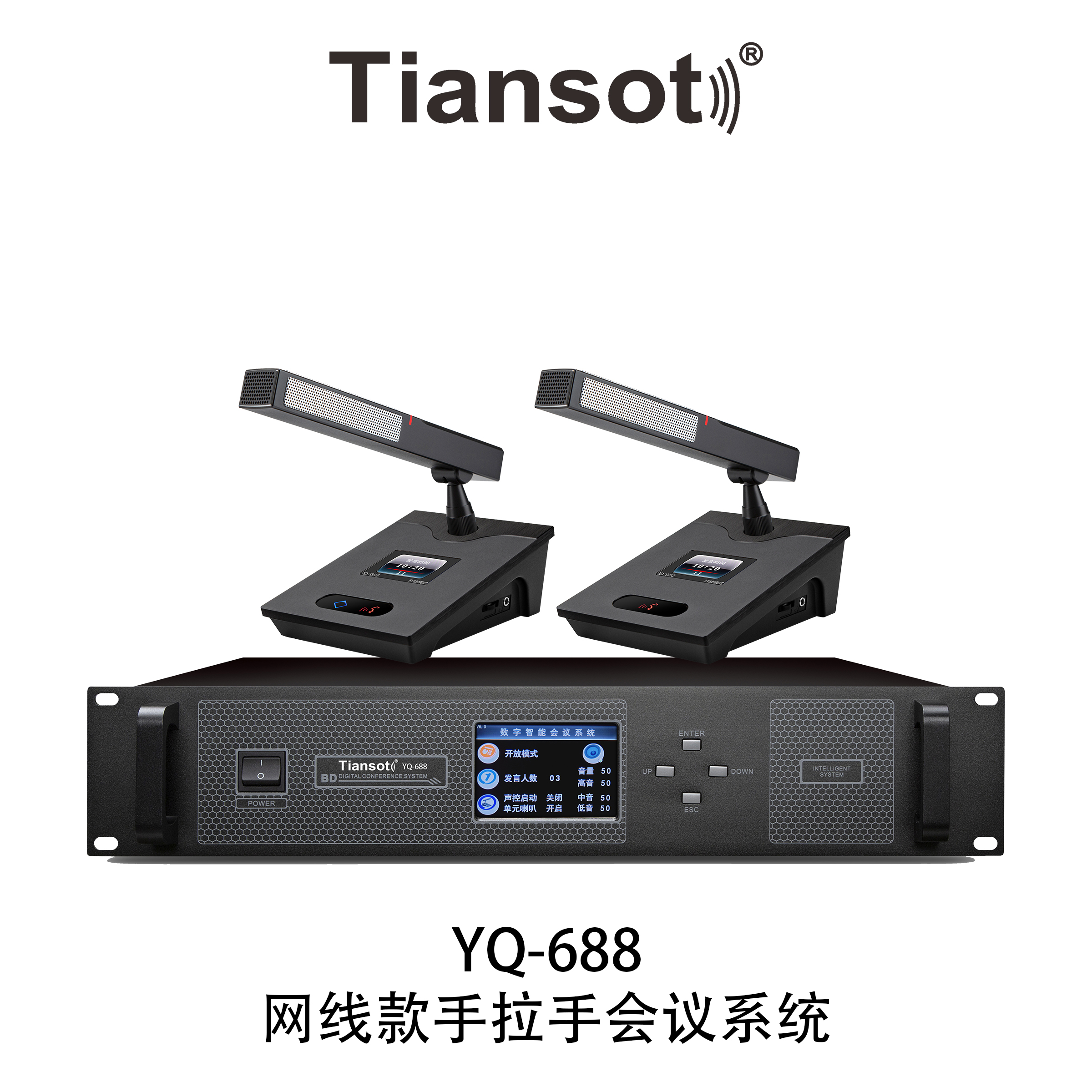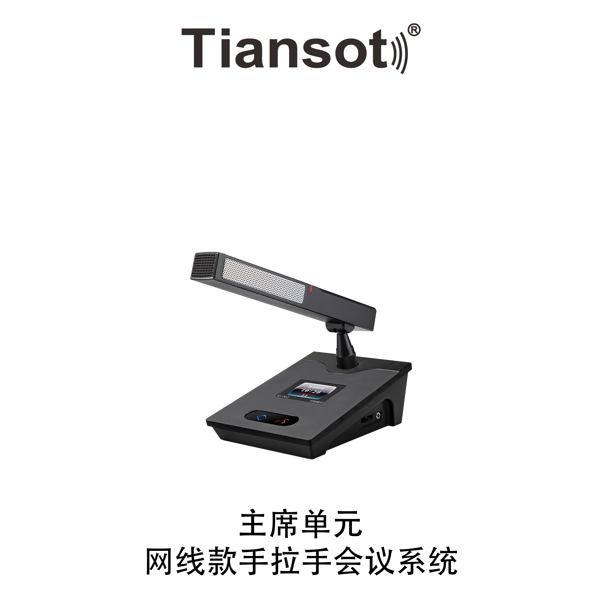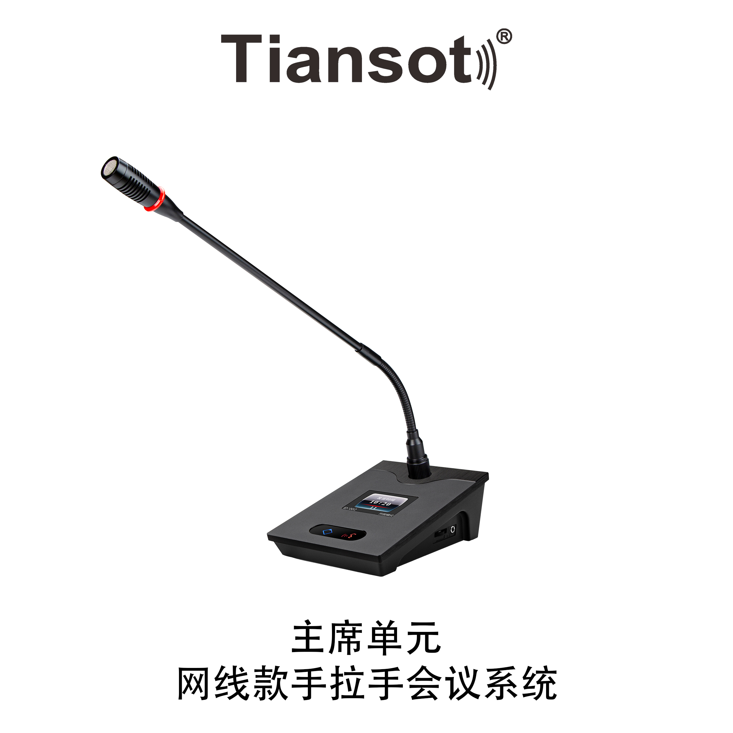 2、标配可插拔式配高强度阳极氧化工艺铝合金方形短咪杆,选配鹅颈长杆话筒带红色发言指示光环或圆形黑色哑光喷漆工艺短咪杆;